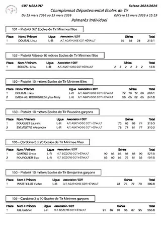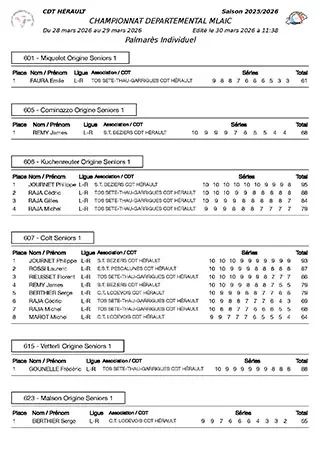 Résultats CDFC 10m Tour Dep. HERAULT